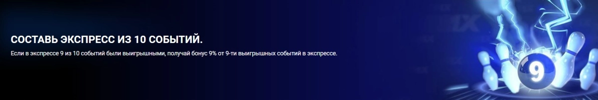Суть предложения проста: вы собираете экспресс ровно из 10 событий, каждое с коэффициентом от 1.6. Если 9 прогнозов оказались верными, а один проиграл, 1xBet компенсирует неудачу бонусом в размере 9% от суммы потенциального выигрыша по сыгравшим исходам.
